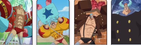 After getting abandoned by his family, Franky was taken under the wing of Tom who made him his apprentice along with Iceburg to train in becoming a good shipbuilder and craftsman after seeing him create a cannon out of waste scarps. As Cutty Flam was a weird name, Iceburg eventually gave Cutty Flam the new name “Franky.” The majority of Franky’s time was devoted to building battleships with the names “Battle Franky” and numbers related to the order of construction.